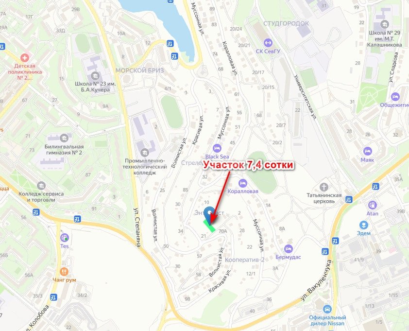 Инфраструктура - СевГУ, гимназия, школа, детский сад, ТЦ Лаванда, Муссон - все рядом и конечно Рыбацкий причал, ул. Степаняна.