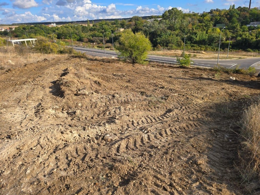 Участок с небольшим уклоном что открывает прекрасный вид на лес и город! Первая линия от дороги.