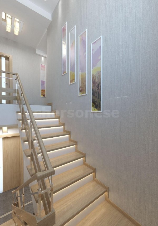 2 этаж: 4 спальни, гардеробная, два санузла, 3 крытых террасы.