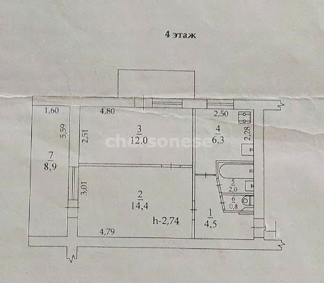 Высота потолков - 2,74
