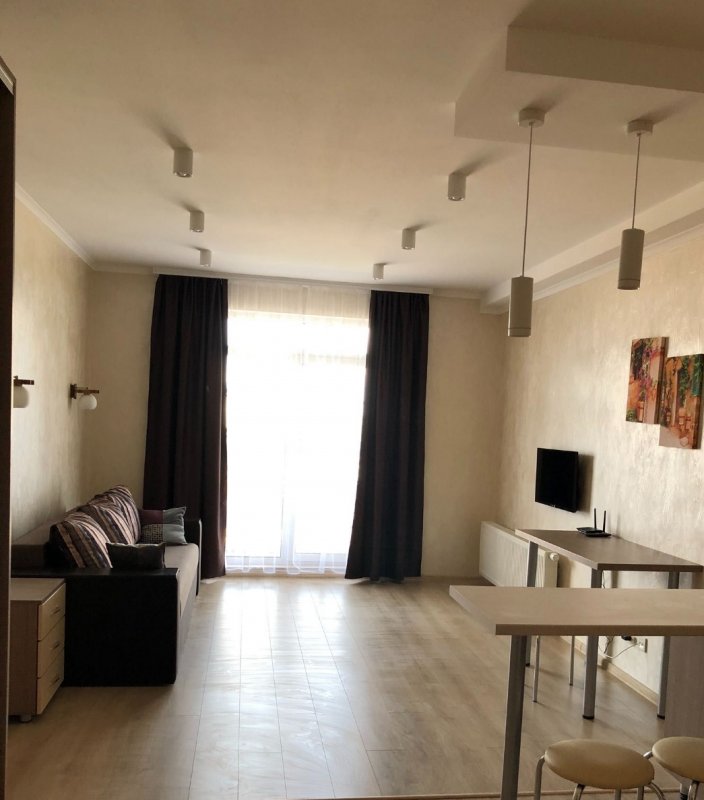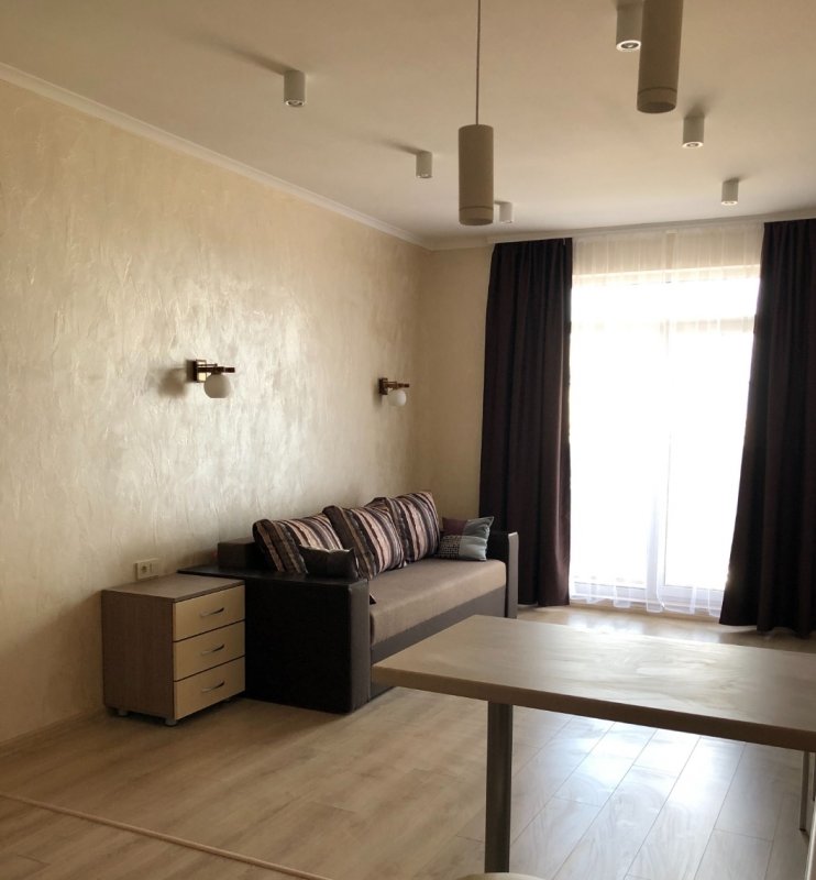 1-комнатной квартиры-студии в новом доме ЖК ,,Новая Англия” по ул. М.Максимовича 24А. Долгосрочная аренда. Этаж 4/12 этажного. Собственная котельня. Выполнен качественный капитальный ремонт в светлых тонах. Полностью укомплектована новой мебелью и техникой. Есть все, что необходимо для комфортного проживания. Счетчики на все включая отопление. Из мебели: двуспальный раскладной диван с ортопедическим эффектом, зеркальный шкаф-купе, стол, стулья, кухня гарнитурная. Из техники: ТВ, интернет, холодильник, стиральная машина-автомат, варочная поверхность, вытяжка. Окно панорамное, есть балкон. Охраняемая территория. Хорошо развита инфраструктура и транспортная развязка. К метро Васильковская 7-8 минут ходьбы. Цена 11000 грн + коммунальные (без комиссии!). Оплата - первый месяц + последний (залоговая сумма). Есть парковка.