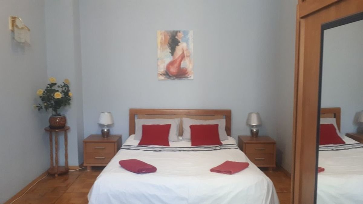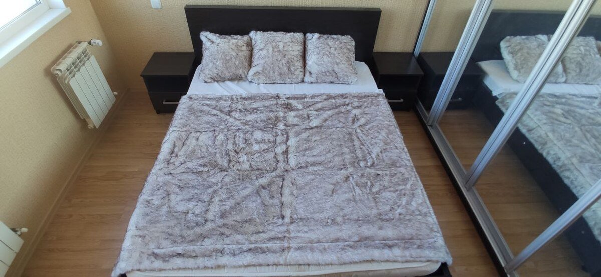 Из мебели: кровать с ортопедическим матрасом, большой шкаф-купе, встроенный шкаф-кладовая, диван, тумба под телевизор, кухонный стол