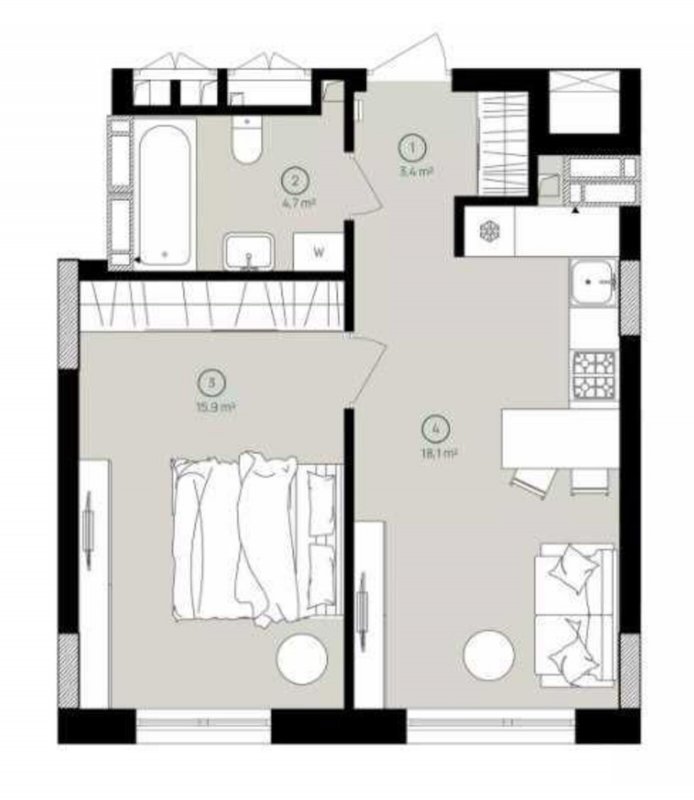 Квартира складається з просторої прихожої, кухні, великого залу, двух спалень, ванної, санвузла, гардеробної, комірки та лоджії.