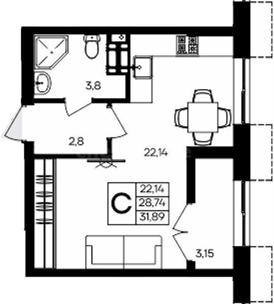 Площадь квартиры 60 кв. метров, спальня 12 кв.м, зал 19 кв.м. Кухня 10 кв.м.
