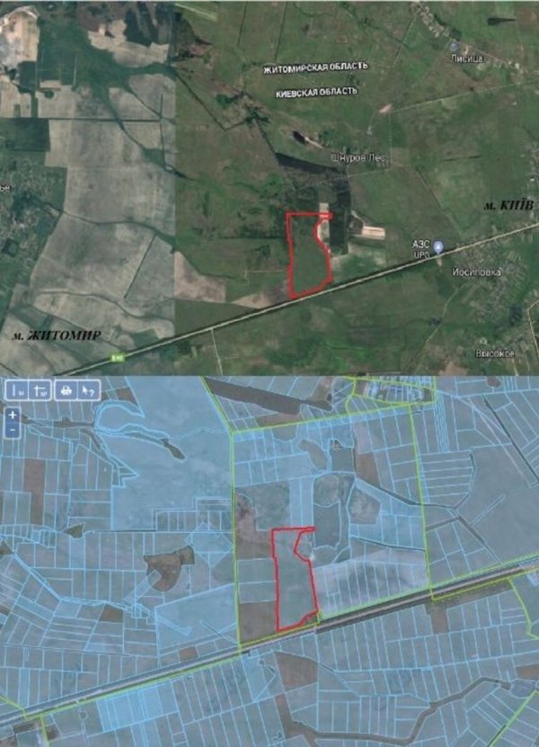Продаж фасадної земельної ділянки загальною площею 26,7311 га., 50 км від Києва. в межах Ставищенської сільської ради Брусилівського району Житомирської області. Фасадна ділянка на трасі Київ – Житомир, з правого боку. Розвинута інфраструктура. Вдале розташування, 2 підїзди з траси, рівний рельєф. Цільове призначення: землі промисловості, транспорту, звязку, енергетики тощо. Можливість розміщення АЗС/ сонячних батарей/ логістичного центру/TIR хабу. Власник – фізична особа. ще