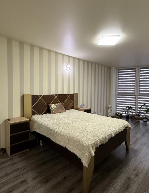 - Кімната з великим двоспальним ліжком, приліжковими тумбами, дзеркальною шафою-купе під всю стіну, смарт телевізором та кондиціонером (обігрів / охолодження)