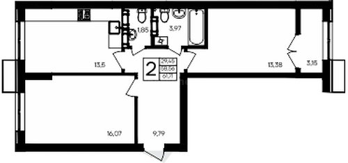 В продаже имеются квартиры в жилом комплексе "Семисчастье" премиум-класса. Общая площадь составляет 61,9208 кв.м., при этом кухня - 16,32 кв.м. Высота потолков достигает 2,7 м.