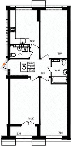 В продаже имеются квартиры в жилом комплексе "Семисчастье" премиум-класса. Общая площадь составляет 61,9209 кв.м., при этом кухня - 16,32 кв.м. Высота потолков достигает 2,7 м.