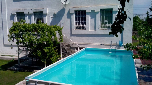 Благоустроенная территория с бассейном( каркасный 3.5м х 7 м) и джакузи.