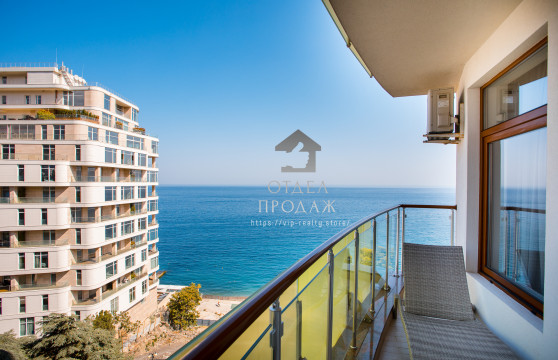 Загальна площа становить - 46.1 кв. м. Виконана дизайнерська обробка з використанням якісних матеріалів, витримана світла колірна гамма, ідеально поєднується з інтер'єром квартири. З відкритої тераси відкривається вид на море, гори і Ялтинську бухту.