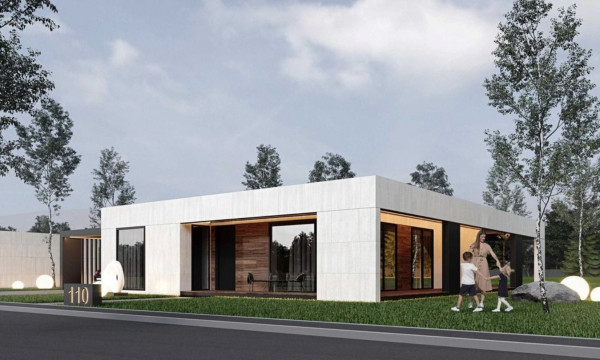 Загальна площа будинку 100 кв. м. Навіс для двох автомобілів.
