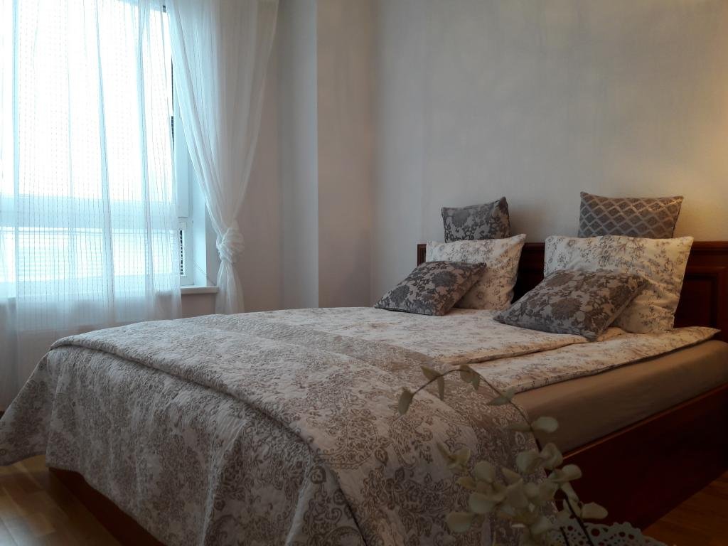Однокімнатна квартира з новим ремонтом, велика затишна кімната, квартира розташована в самому центрі міста Суми, з прекрасним видом на місто. У квартирі є Wi-Fi інтернет, кабельне телебачення, праска, фен, достатня кількість посуду, холодильник, 2 дивани, меблі, гаряча вода цілодобово, чисто, затишно, світло. Не для вечірок!!! Будинок знаходиться під охороною. Поруч магазини, кафе, ресторани, бари, сквер, парк, стадіон, річка, ринок, зупинка міського транспорту.