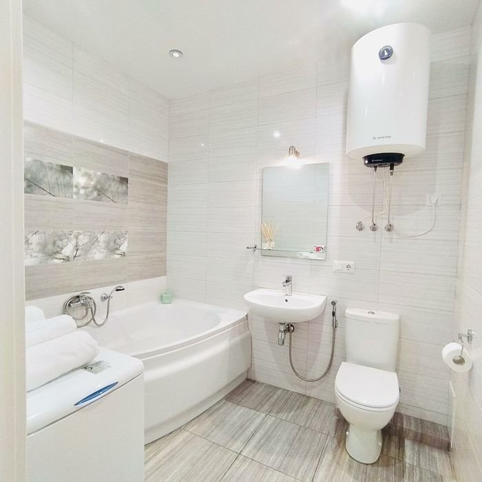 В квартирі тепла підлога,бойлер,кондиціонер,пральна машина,ТВ,СВЧ,праска,прасувальна дошка, фен.