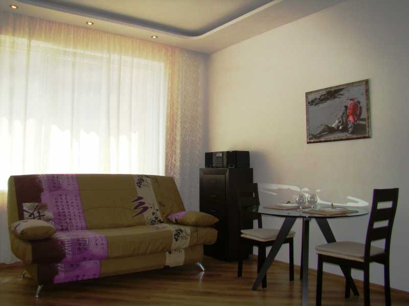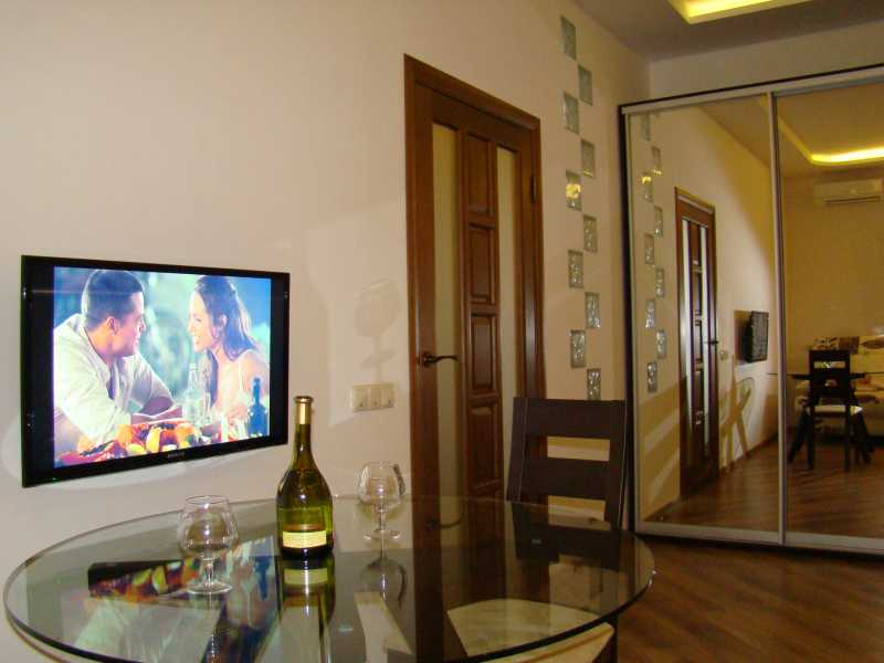 Опис квартири: Нова після ремонту, стильна сучасна, затишна квартира складається з двох повноцінних кімнат з окремими ходами. Обидві кімнати укомплектовані всім необхідним, Великі Full HD телевізори, двоспальні дивани, величезний шафа купе. Багаторівневі стелі, управління підсвічуваннями і точковим освнщением.