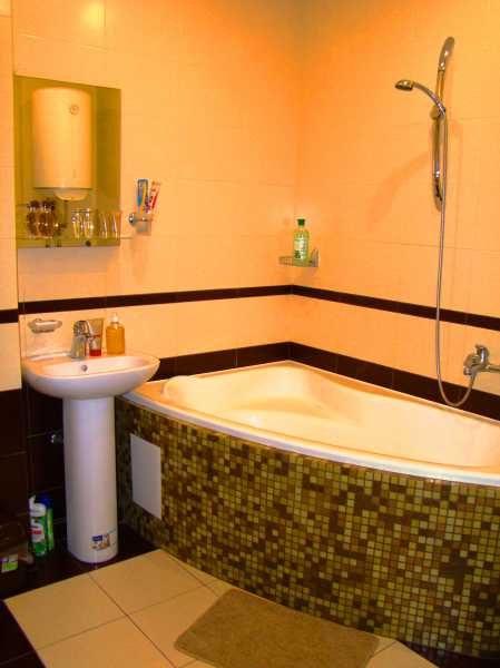 Просторий санвузол з великою кутовою ванною.