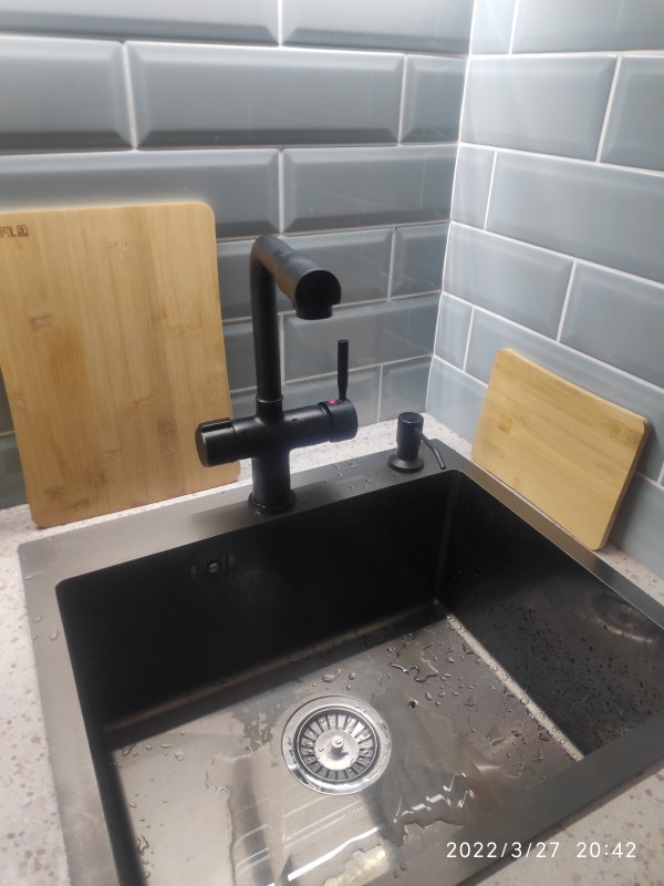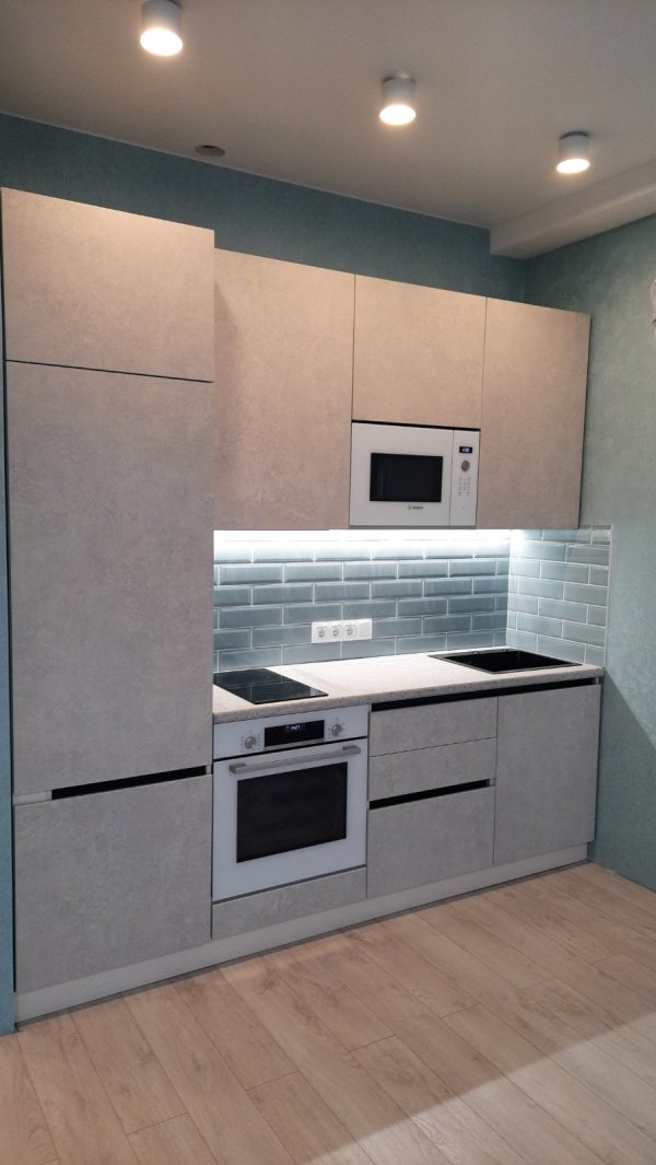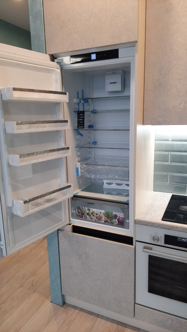 Полностью оборудованная кухня: встроенный холодильник, вытяжка, духовой шкаф, микроволновая печь, фильтр для воды, индукционная плита.