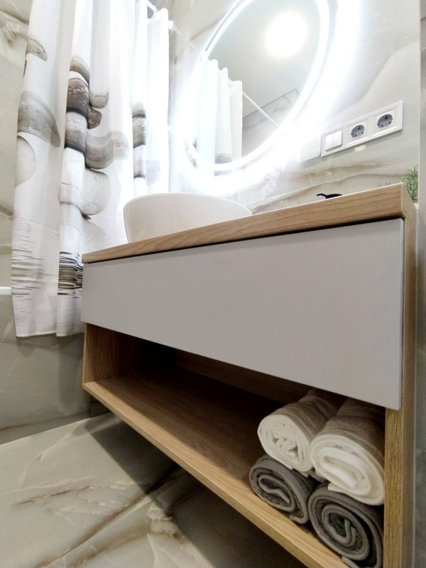 Планування: кухня-студія з диваном, 2 спальні з ліжками та ортопедичними матрацами, просторий санвузол з ванною.