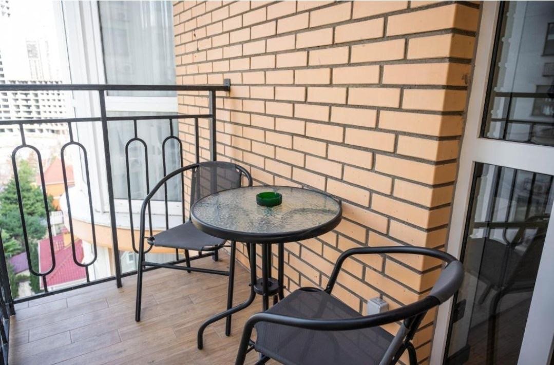 Открытый балкон с мебелью для отдыха
