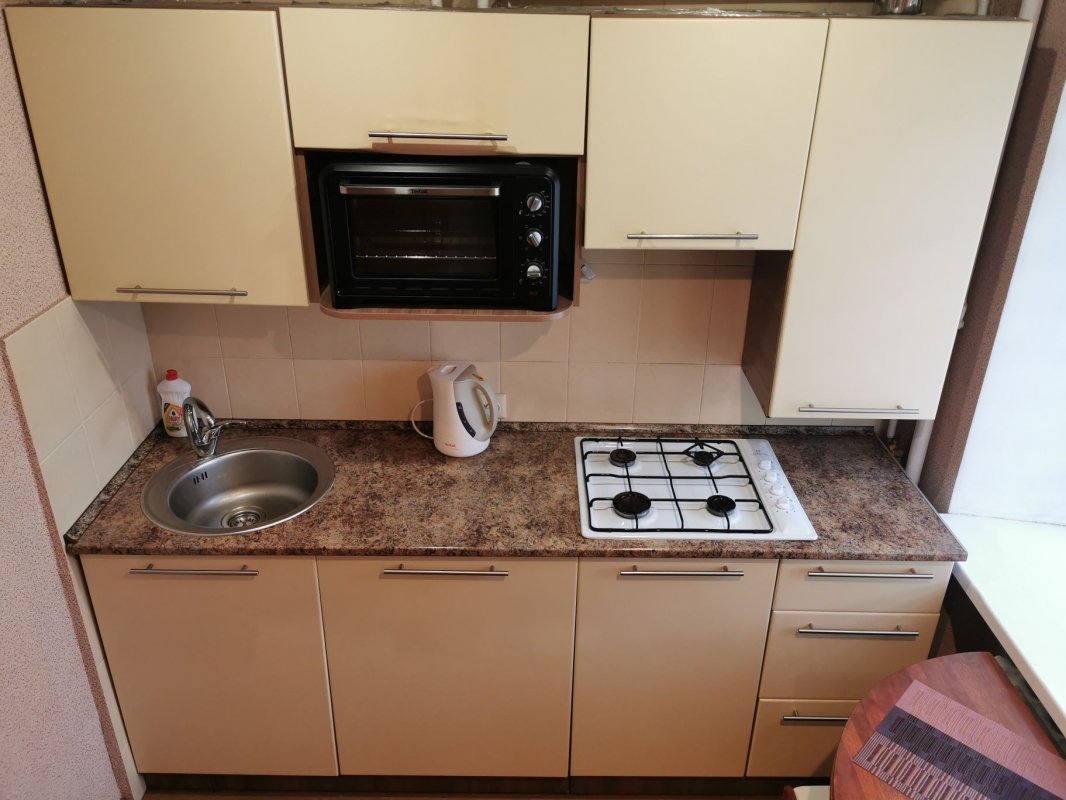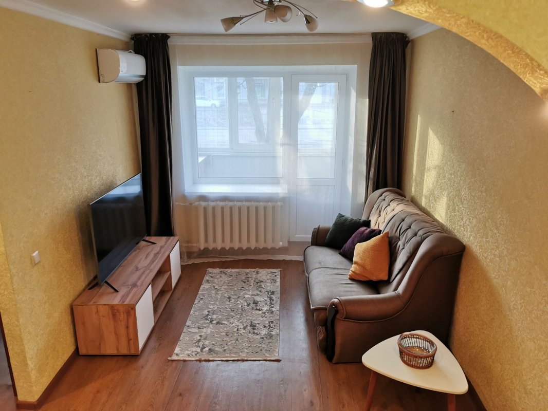 Здам. 1-кім. кв. район просп. Пилипа Орлика, просп. Богдана Хмельницького 7. Хрущовка, 2/5, панель, 32/17/6, ремонт, меблі, техніка, двоспальне ліжко, розкладний диван, будинок утеплений, газова колонка, бойлер, пральна машинка, кондиціонер, балкон засклений, інтернет. 15 000 грн. + послуги агенції. т., Сергій, АН «Азбука житла». www. azbuka. dp. ua,