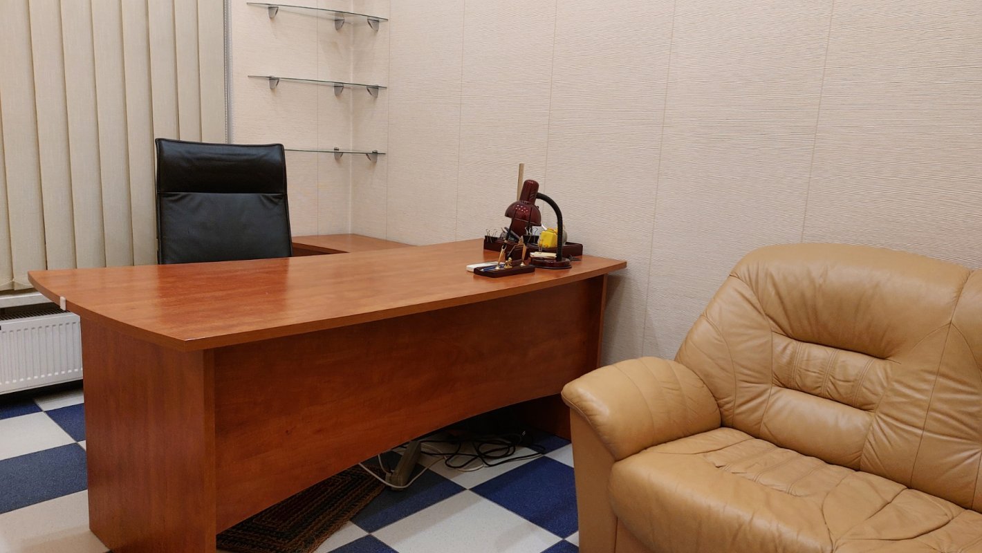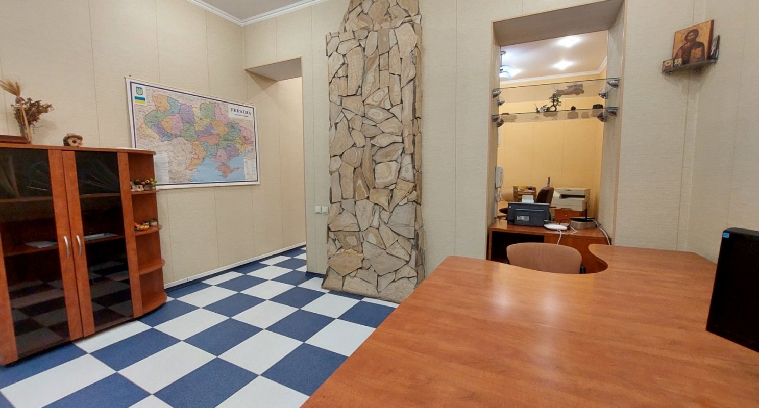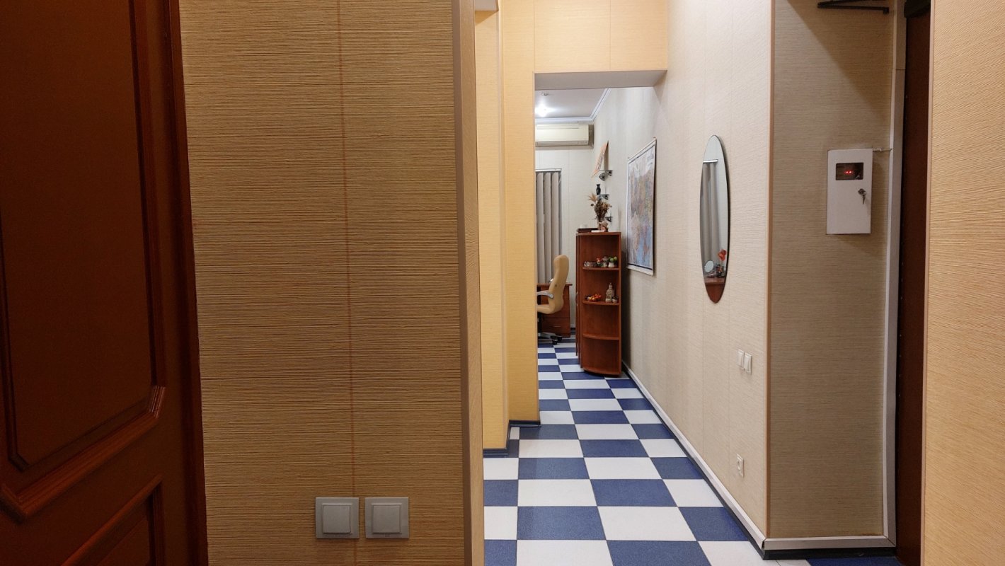 Крепкий дом из ракушечника. Вход со двора. Высокий первый этаж/4. Приемная, большой комната на четыре рабочих места, отдельный кабинет, кухня, санузел. Все помещения с окнами. Ролеты. Офисная мебель. Интернет (Тенет). Отопление – АГВ. Два кондиционера. Счетчики на свет, газ и воду. Сигнализация. Закрытый двор. Сдается длительно. Цена – 15 000 грн/месяц + коммунальные платежи. Залоговая сумма + посреднические услуги.