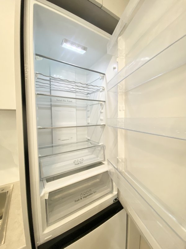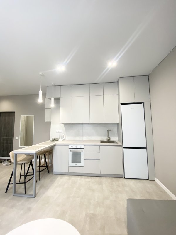 Кухня укомплектована встроенной бытовой техникой, есть очиститель воды, двухкамерный холодильник.