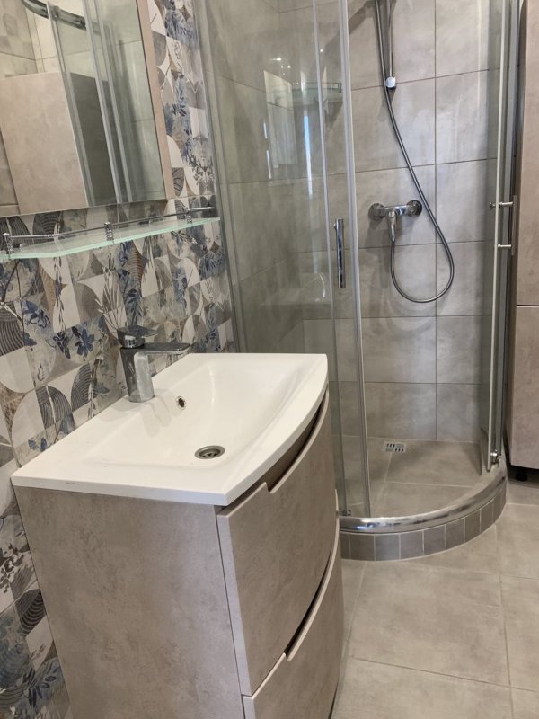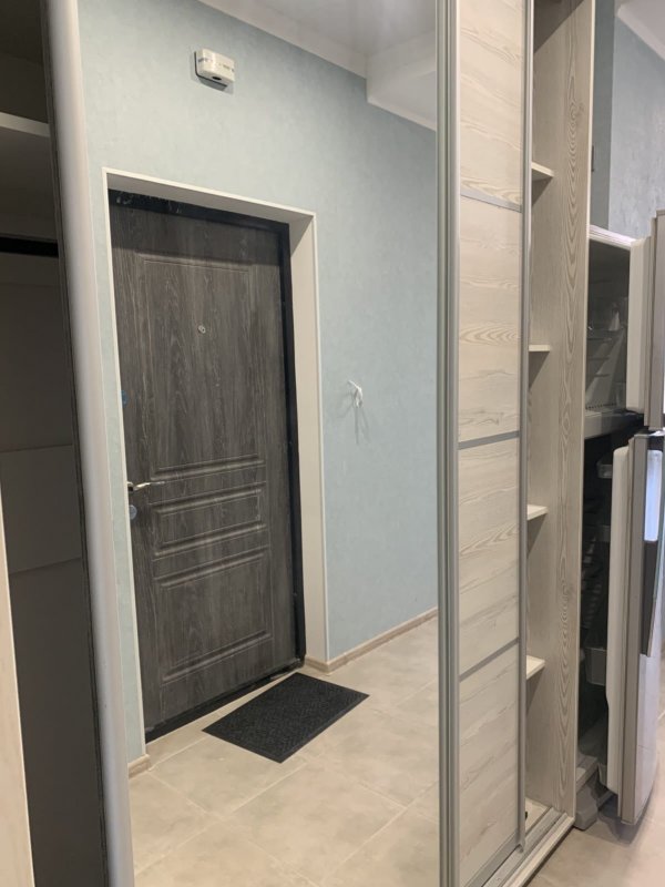 8 этаж, студия, 33 кв. м, все новое, бойлер (хотя в доме есть своя котельная), эл. плита с духовкой, тёплый пол, кондиционер, микроволновка, вытяжка над плитой, стиральная машина, мебель, квартира полностью оборудована.