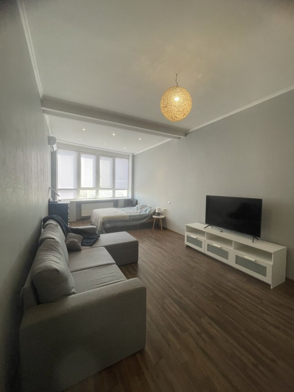 Сдам однокомнатную квартиру в ЖК " Звездный городок -1"/ Армейская. Общая площадь 55 м. 11/22 эт. В комнате кровать и диван, гардеробная. Есть посудомоечная и сушильная машина. В доме есть генератор. На длительный срок