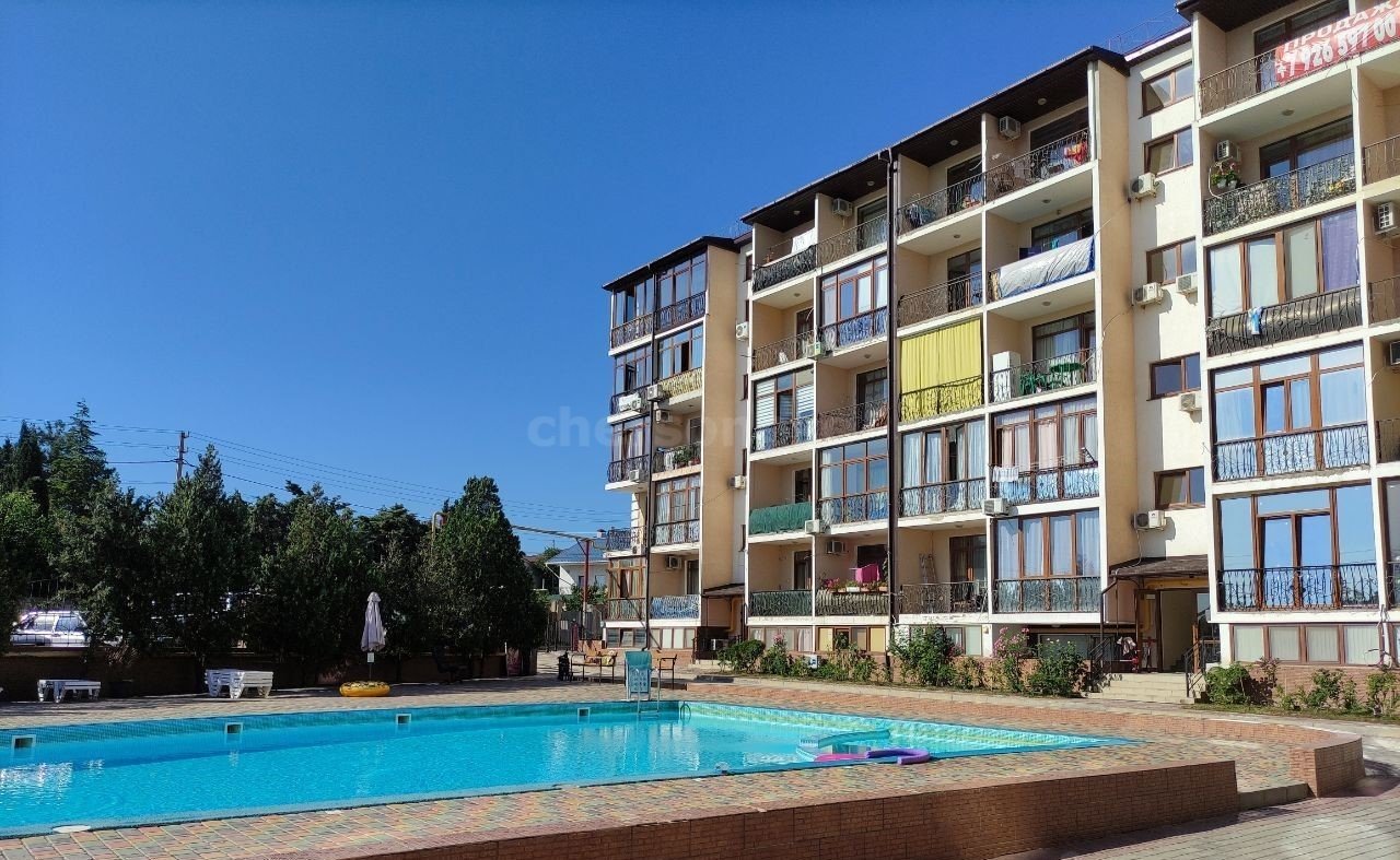 На территории есть бассейн, детская площадка, банный комплекс, СПА- центр, кафе, салон красоты, минимаркет, платная и бесплатная парковки. В шаговой доступности частный детский сад. До моря 200 метров.