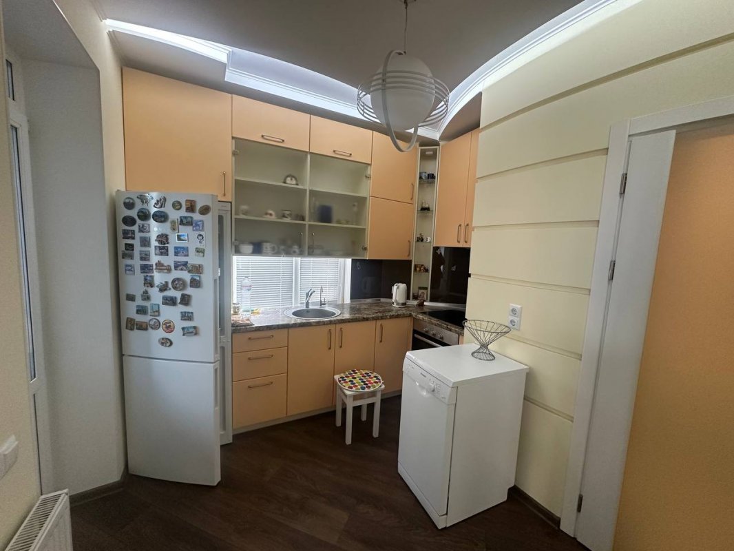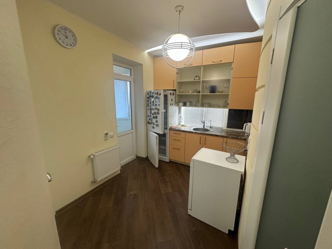 Комната с гардеробной, кухня с выходом на лоджию (кабинет, радиатор), прачечная