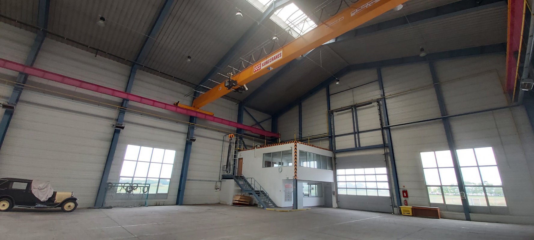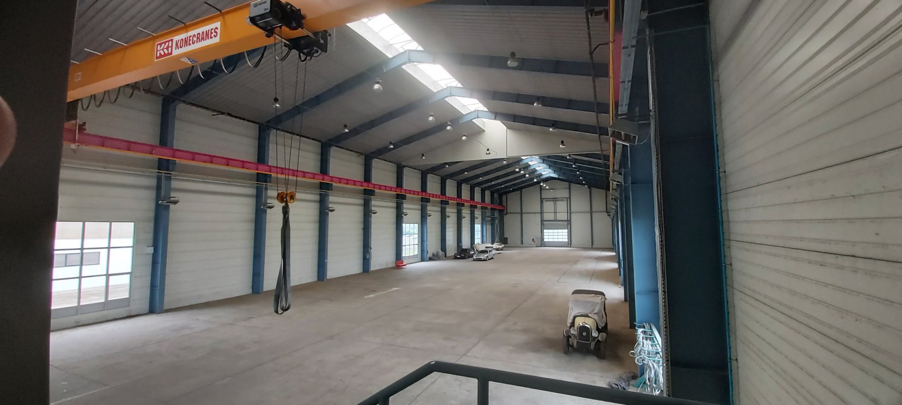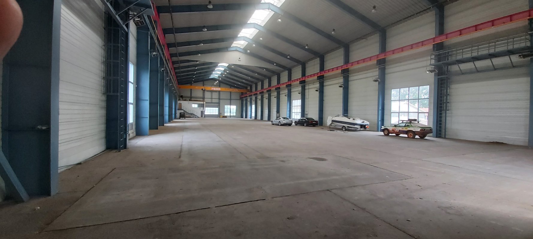 The warehouse has only been erected, but has never been used. It is situated on a 12000sqm piece of land, with the gross amount of structure being 2100sqm, its internal height reaching 16m, hosting a built-in crane that weighs 10 tons.