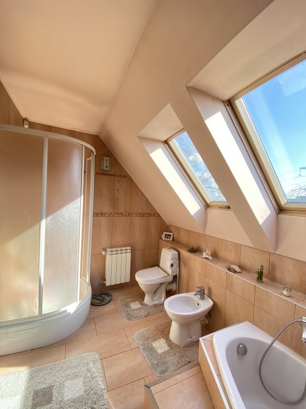 Продаємо цегляний будинок, утеплений - стильне і незвичайне планування, євро ремонт. Ділянка 7, 8 соток в 11 км від Києва, поруч Десна - 1 км від будинку. Місце супер для великої родини, і щоб жити, і для літнього відпочинку з дітьми!Продаж від ГОСПОДАРЯ, будували для себе в 2007 році (постійно проживаємо з 2007 року по теперішній час). Ціна: за будинок + камін в будинку + меблі + вбудована техніка: плита газ-електро 2 × 2, пральна машина, духовка електро, посудомийка + мікрохвильова піч + холодильник + телевізори (кухня, спальня, вітальня) +4 кондиціонера + басейн критий з підігрівом і фільтраційною установкою (піщана + ультрофіолетових) дов. 6 м × ш 3 м. -глибина 1, 5 + на території невеликий будиночок( з сауною і кімнатою відпочинку), в якому є душова і камін + гостьовий будиночок із санвузлом і кондиціонером + 2 гаража (асфальтований під'їзд до ділянки з 2-х сторін) + переливна каналізація на 3 ємності + свердловина 67 метрів + електрика + газ. Будинок компактний зовні, просторий всередині. У будинку зроблено все для постійного проживання! В домі 5 кімнат + велика вітальня з каміном, велика кухня, комора та госп-блок (в цокольній частині будинку), оптоволоконний інтернет, 3 санвузли. Газовий і електро котли, твердопаливний обігрів, стабілізатори, розводка під генератор, 4 камери відеоспостереження з регістатором. Будинок під охороною: проведена пожежна сигналізація + датчики руху + датчики розбиття скла. Два гаража: перший-основний, в будинку, на дві машини (опалювальний), другий гараж під гостьовим будиночком на одну машину. На території плодові дерева, завезений чорнозем, газон з поливом, тротуарна плитка. Близько і швидко до Києва і "цивілізації" + гідна інфраструктура:
