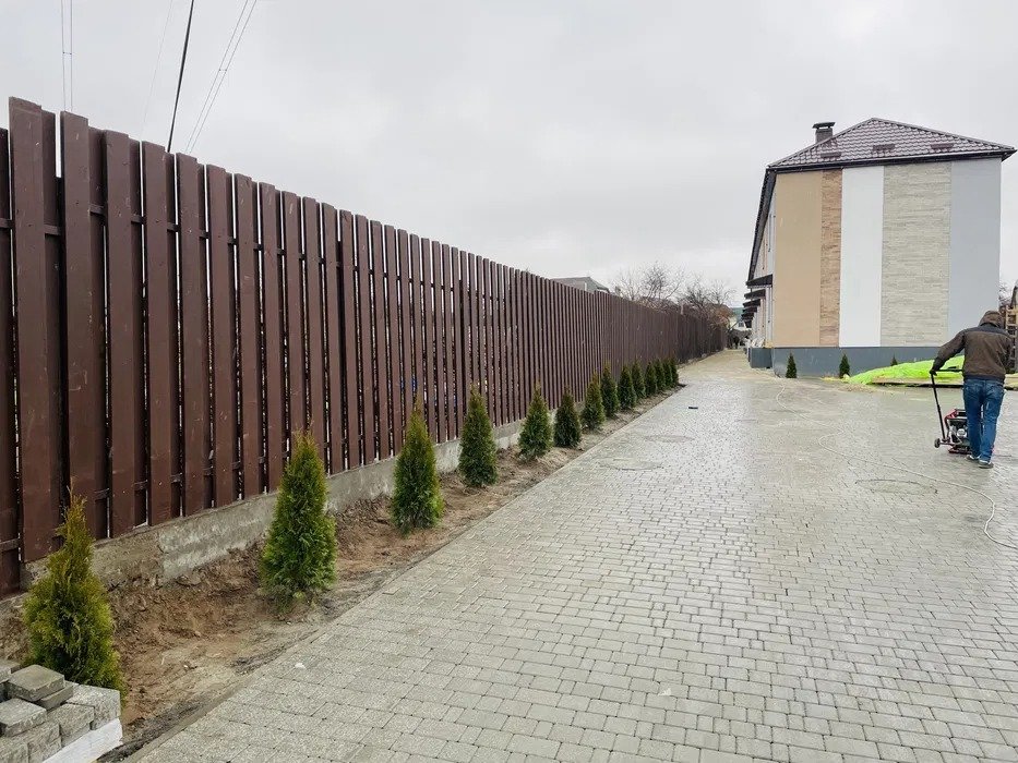 Таунхаус с приватным двориком, закрытой полностью приватной территорией, расположен на 0,8 сотке земли в Софиевской Борщаговке по улице: Шевченко, 240.