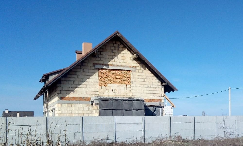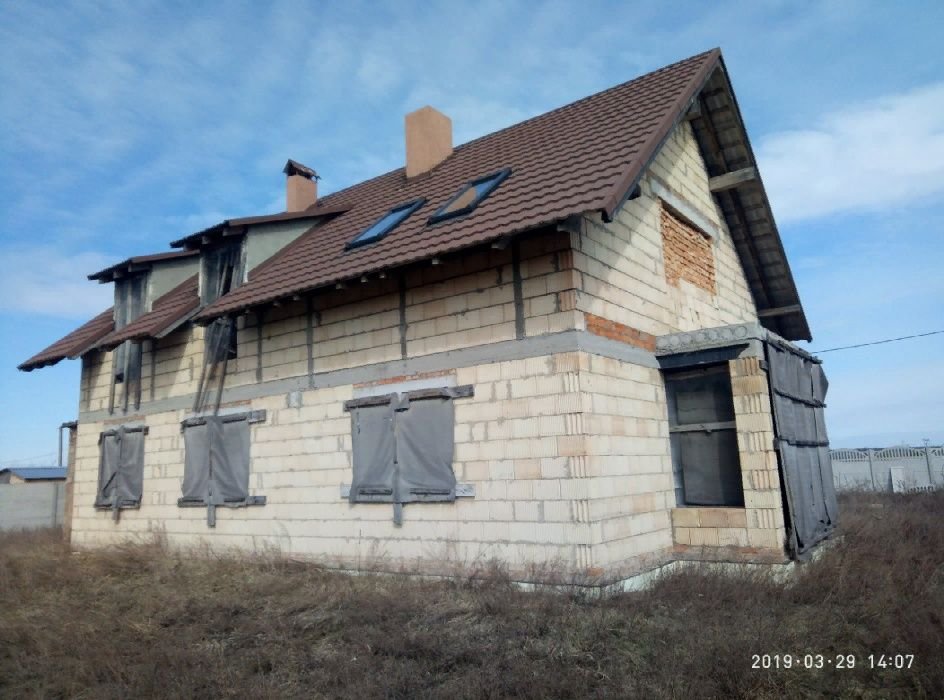 Продам недостроенный дом в селе Буча, ул. Солнечная, 12, Киево-Святошинский район, Киевская область (расстояние от дома до Центра Киева 35 км, метро Житомирская 23 км). Стены – Керамоблок-25, крыша – композитная металлочерепица. Общая площадь по проекту 240.9 кв. м., жилая – 119 кв. м., площадь застройки -156.9 кв. м. Комнат – 6. Участок по периметру огорожен декоративными железобетонными плитами (высота 2м.) Электричество трехфазное, заведено на земельный участок. На первом этаже проведена электропроводка и утеплён пол. Большим преимуществом есть участок -15 соток. Рядом смешанный лес, речка Буча, Генеральские озера. От дома до трассы Киев-Житомир около одного километра. От дома до асфальтного покрытия – грунтовая дорога с щебнем 200-250м. Газопровод от дома около 200м.