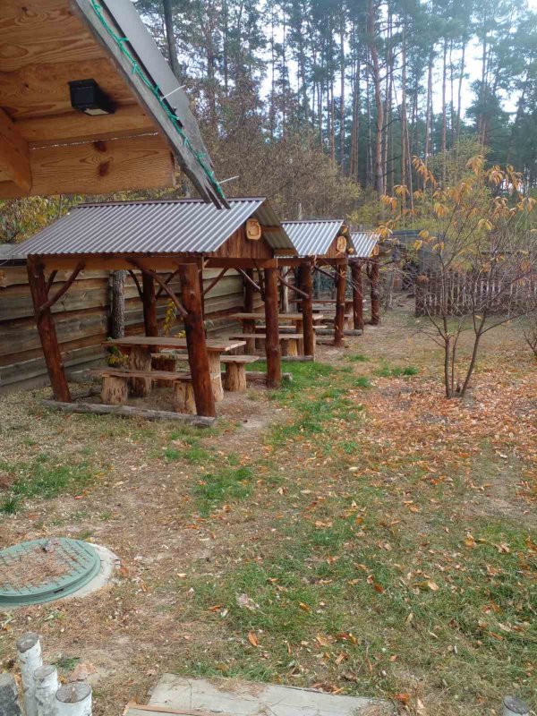 Предлагается на продажу дом-дикарь-сруб в лесу без единого соседа для большой семьи или под базу отдыха, с. Пилиповичи, Бородянский район. Территория 70 сот (акт приватизации). На территории дом сруб 2 эт. 200 кв. м. каминный зал со всеми удобствами + 3 отдельных гостевых домика с экологически природного материала со всеми удобствами. Зона барбекю, детская площадка, два личных озера (одно зарыблено), другое для купания. Гараж на две машины, большой погреб и всяческие хоз. постройки, а также колодец с вкусной водой (глубина 33 метра) + скважина. Мебель ручной работы из дерева оставляем вам. Место, где живёт любовь и счастье!