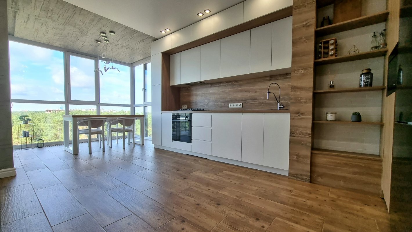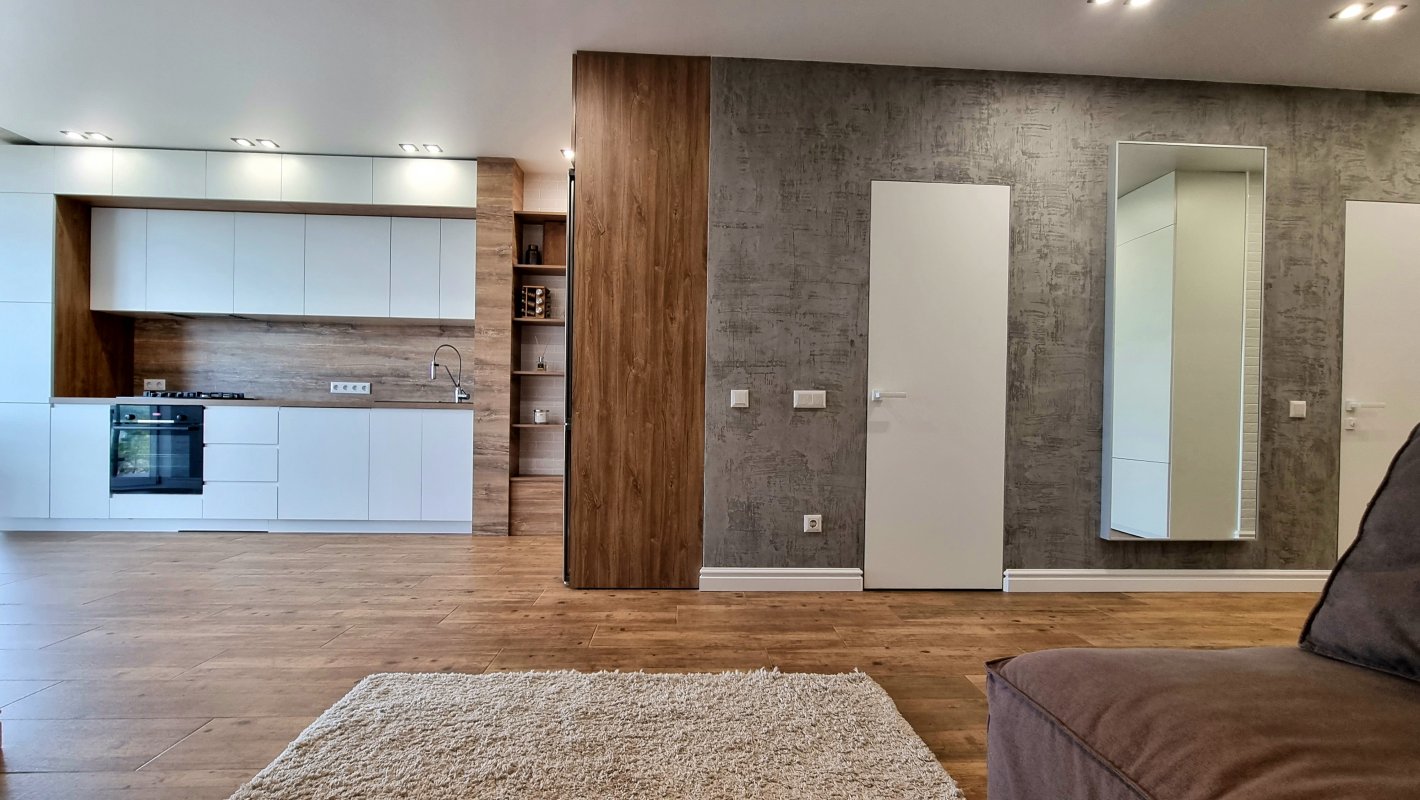В квартирі новий ремонт, продуманий, стильний та дорогий. Присутня окрема гардеробна і окрема пральна кімната.