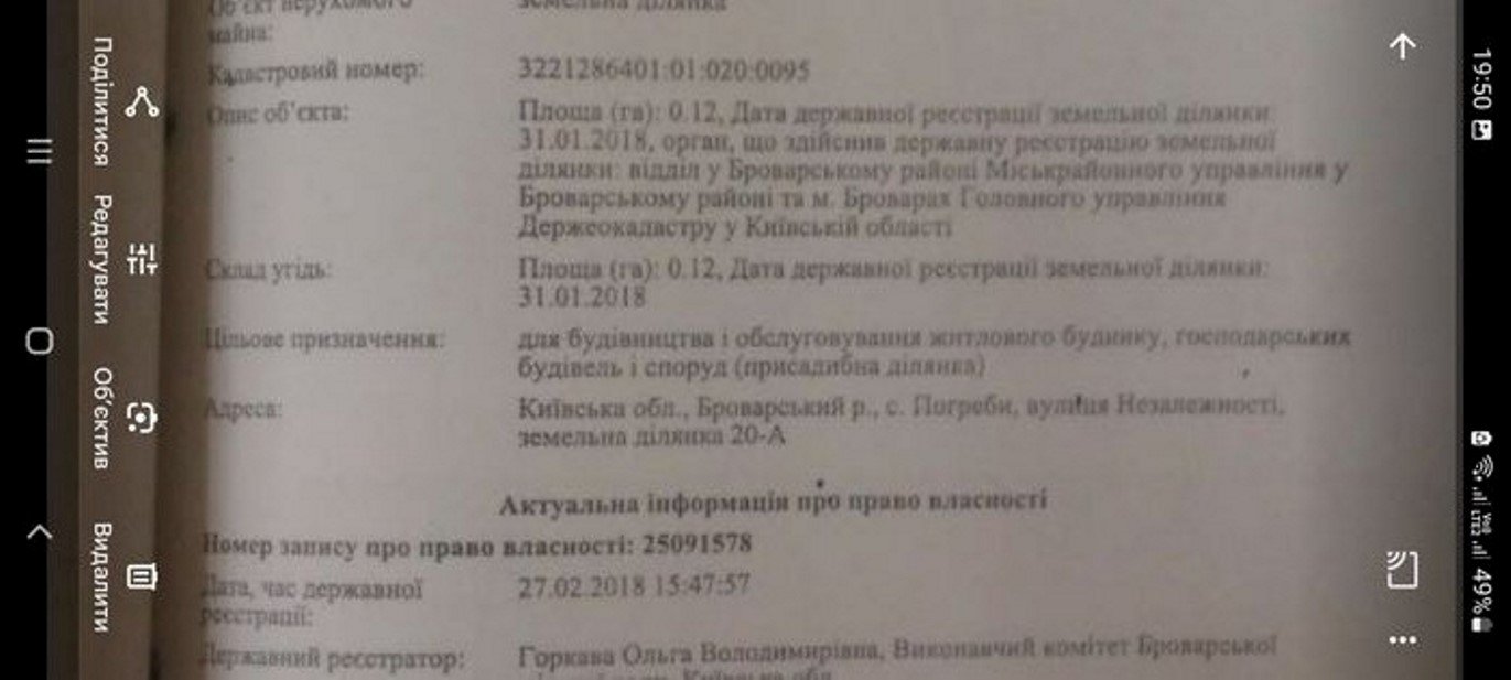 Продаж земельної ділянки, Броварський район, селище Погреби, за 7 км від Києва.