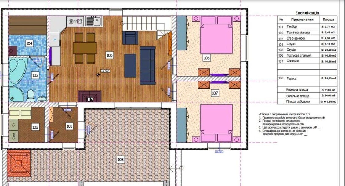 Перший поверх майже закінчений ремонт (ламінат, плитка, двері, шпалери у спальнях), другий поверх під чистову обробку. Дизайн-проект всього будинку у подарунок. Сходи між поверхами металевий каркас, вікна Rehau (двокамерні), фурнітура Maco. Встановлено підігрів підлоги. Всі комунікації підведені та розведені по будинку: підігрів підлоги, вода – свердловина 25 м; світло – 16 квт., електрокотел 12 квт, каналізація – септик, укладено тротуарну плитку.