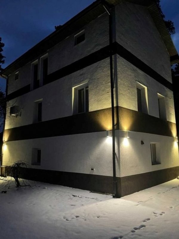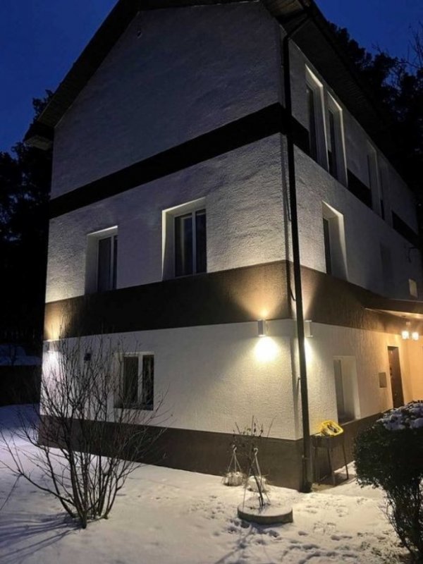 Жилой дом в лесу с. Таценки, 400 м до р Стугна. Дорога до Киева занимает около 25 минут, абсолютно без пробок. Отопление электрический котел на 18 квт и твердотопливный котел 40 квт плюс тепловой насос - 25 градусов. В дом подведено электричество 15 квт, двух тарифный счетчик. Скважина 50 метров, система очистки плюс обратный осмос (для питьевой воды). Два септика 10 куб.