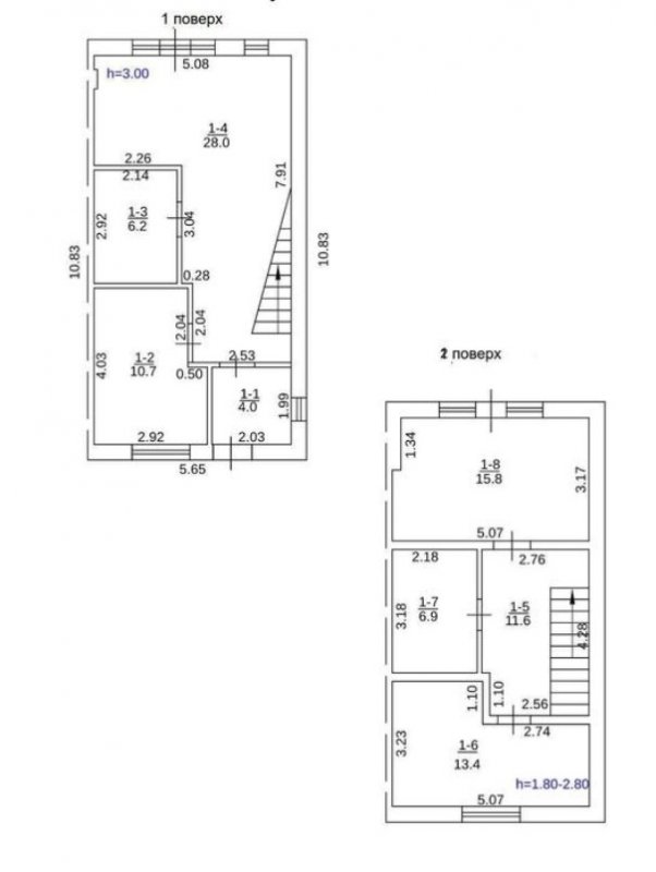 - Перекриття між 1 і 2 поверхом: залізобетонна монолітна плита;