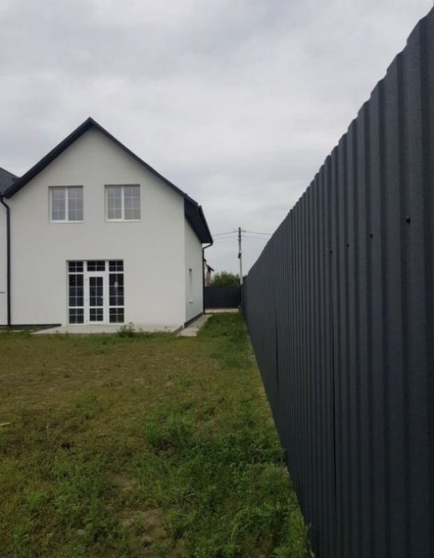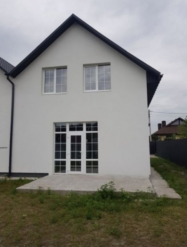 Продам будинок дуплекс 120 кв / м., в 10 хвилинах від Києва. Будинок в хорошому, затишному місці в с. Крюківщина, Бучанського (Києво-Святошинського) р-н., ЖК Удачний, вул. Ранкова (Утренняя). Вулиця повністю забудована. Стіни зроблені з газоблоку. Дах накритий якісною металочерепицею. Вікна металопластикові енергозберігаючі шестикамерні, профіль Wds 70 plus. Своя свердловина на 50 метрів. Є септик з переливом на 8 кубів. Ділянка правильної форми 3,5 соток, приватизований, підсипаний чорноземом і огороджений парканом. Електрика підключена в розмірі 5 кват з можливістю збільшення, три фази. Встановлено трифазний лічильник. Підключений тариф день ніч. У 100 метрах знаходиться приватний дитячий садочок і школа. До зупинки і найближчого магазину Фора 700 м, до метро Теремки 15 хв. їзди на автомобілі або маршруткою.