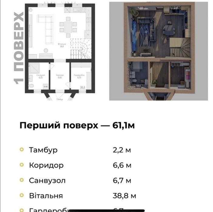 Вітальня - 38.8 м.