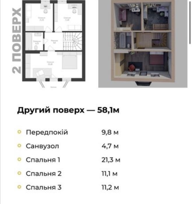 Спальня 1 - 21.3 м.