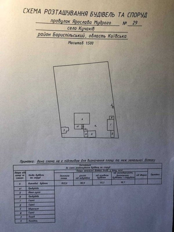 Продається житловий будинок у селі Кучаків, Бориспільського району, Київської області. Земельна ділянка 25 соток (два держ. акти 0,1522 га та 0,978 га). Рік побудови 1970, загальна площа будинку 64,3 кв. м. житлова площа 43,8 кв. м. При житловому будинку є такі будівлі: літня кухня, два сараї, погріб, криниця, усе огороджене забором. На подвір’ї є криниця у якій є насос, воду качає. Туалет на вулиці. У хаті є газовий котел, хата дуже тепла, якщо котел ввімкнено на дві поділки, то у хаті температура відразу до +20, це при великих морозах. Готові торгуватись та трішки вступити ціну.