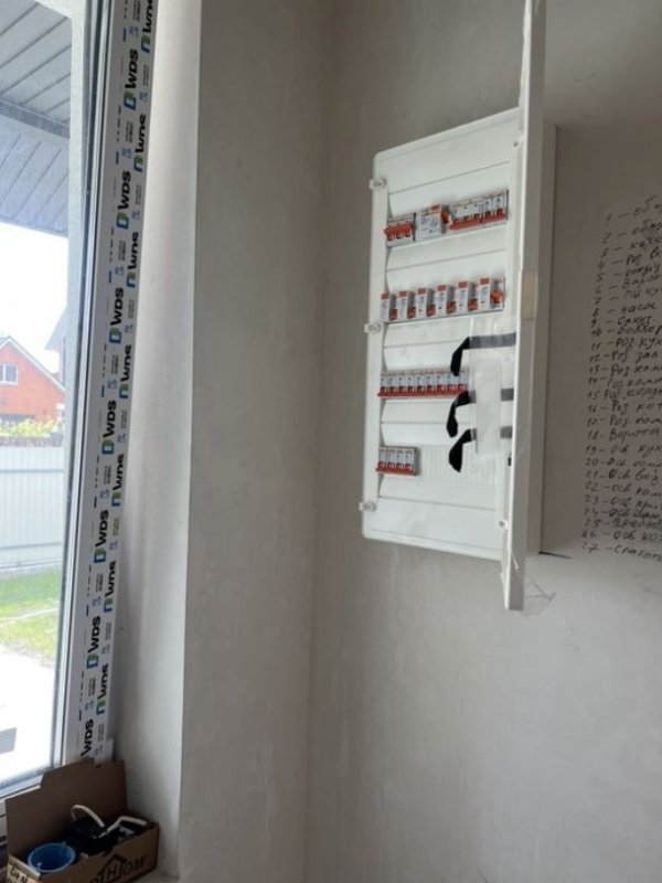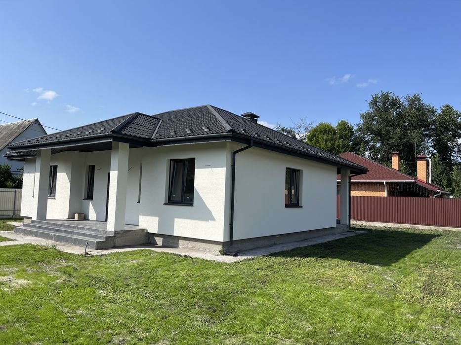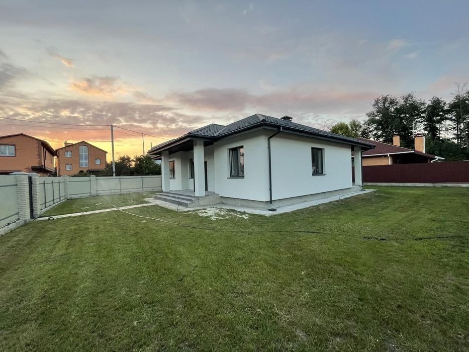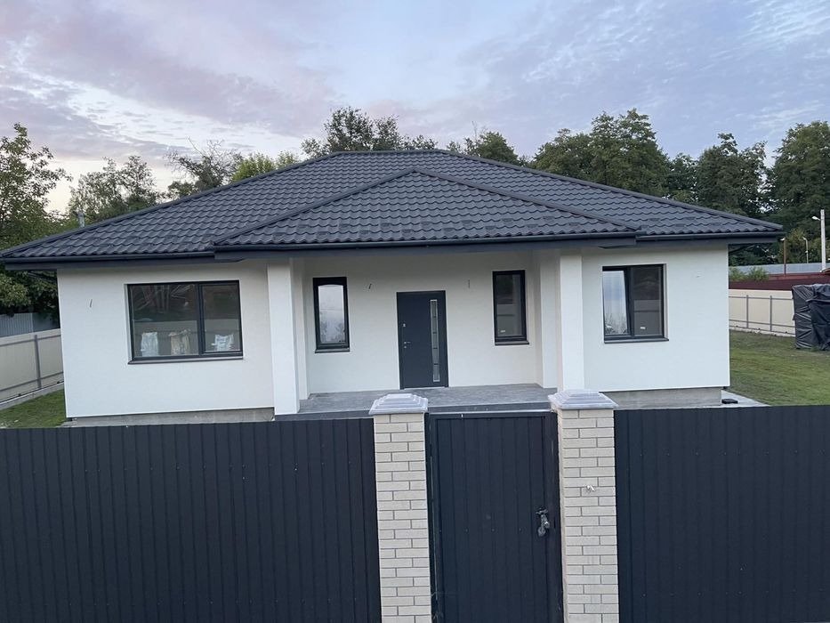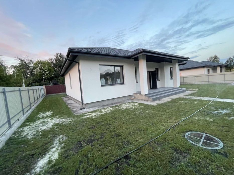 Продам новий будинок загальною площею 135 кв. м в с. Вишеньки. Знаходиться в тихому спокійному місці, біля озера, ділянка 7 сотих, септик, світло 10 квт. Будинок має 4 кімнати, 2 санвузла, котельна, велика тераса, вікна з вітальні та з тераси з видом на озеро. В будинку розведена електрика (змонтована електрощитова і встановлені монтажні коробки під розетки), зроблено заземлення, машинна штукатурка, потолки гіпсокартон під фарбування, встановлені підвіконня, зроблено опалення і розведена вода, чистова стяжка. Будинок під чистове оздоблення. В дворі встановленні відкатні ворота, залиті доріжки, місце для авто, а також відмостка, земля чорнозем, засіяний газон. (Будівельний паспорт, декларація про початок будівництва).