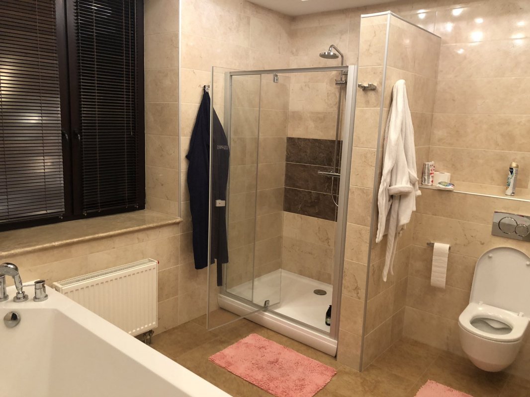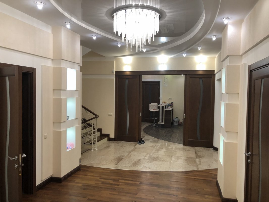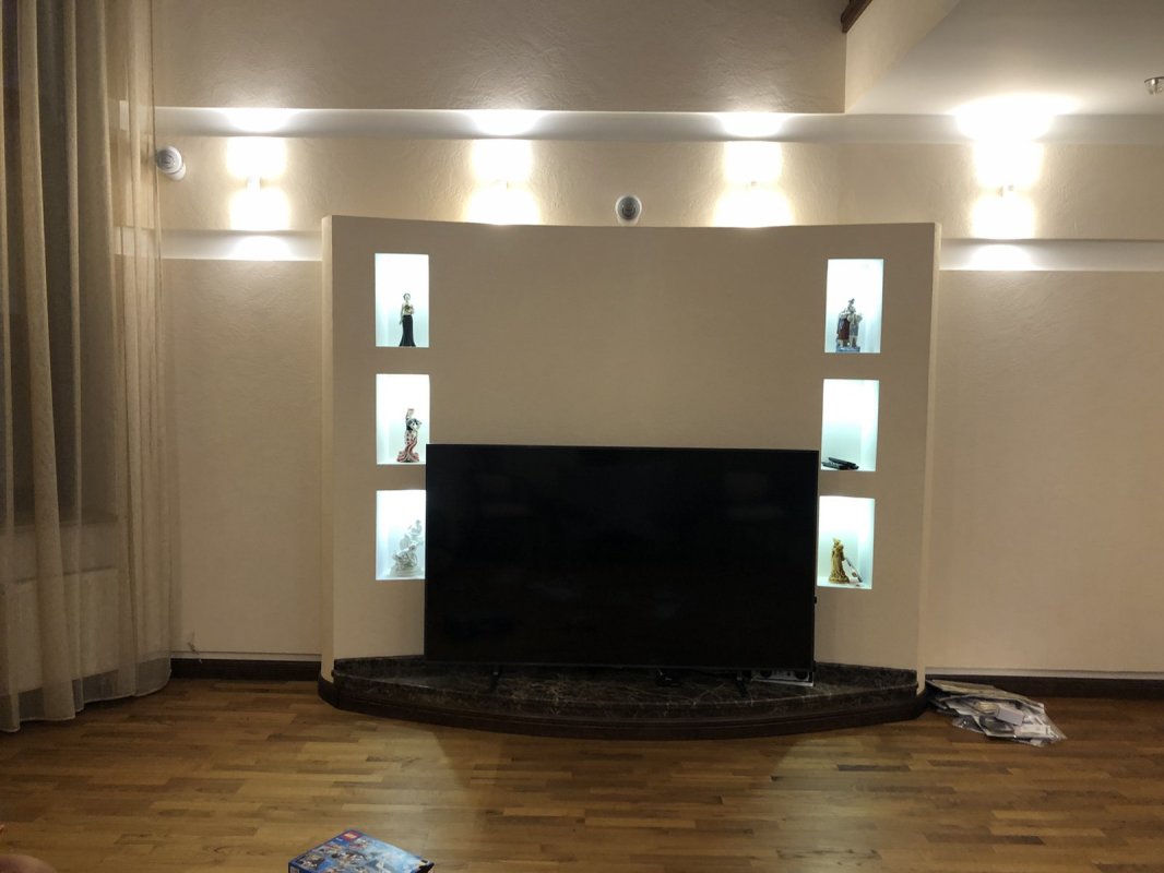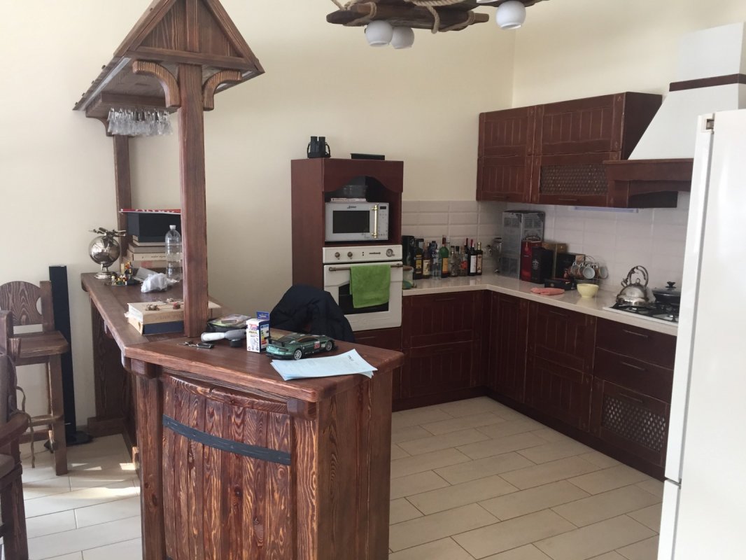 Будинок 526 кв. м три поверхи + цокольний поверх. Виконано авторський ремонт 2017 року. 7 спалень, 4 санвузли, простора вітальня з каміном та величезною плазмою. Кухня обладнана всією необхідною технікою: холодильник, мікрохвильова піч, посудомийна машина, духовка, газова плита.