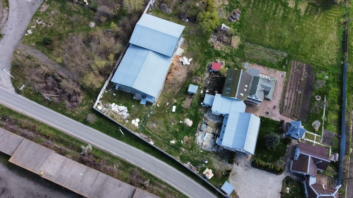 Ангар 800 м2. ділянка 40 сот. Огорожена бетонним забором. Поруч пожежна водойма. Свій трансформатор 165кВат з можливістю збільшення потужності. Дорога асфальтована, поруч є місце для розвороту великогабаритних автомобілів Ціна 299 000 у.е.