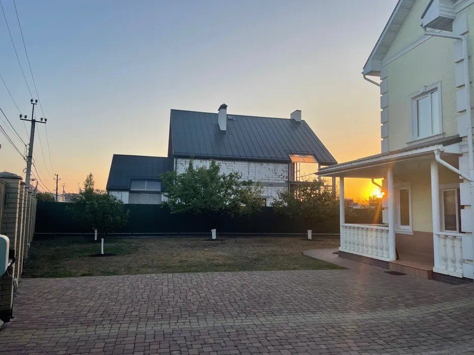 Площа від в’їздних автоматичних воріт до будинку та гаражу вимощена бруківкою, решта територія під зеленим трав’яним газоном. Територія земельної ділянки має металеву суцільну огорожу висотою 2 м. В’їздні ворота автоматичні з електроприводом. Маються окремі вхідні двері, що закриваються на замок. В будинок заведені 3 фази потужністю 14 квт. Опалення та все теплопостачання через електрокотел потужністю 21 квт, електробойлер на 80 л. Опалення через підвіконні батареї та теплі поли і туалеті на 1-му поверсі і ванній кімнаті на 2-му поверсі. В котельні встановлено та під’єднано до системи також і газовий котел, але будинок до газової магістралі не підключено. Від газової магістралі до будинку закладено трубопровід та погоджено проект газопостачання.