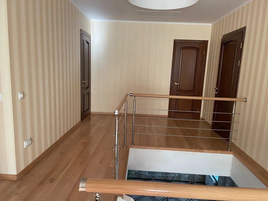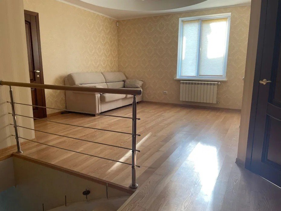 Двоповерховий будинок побудований на посиленому монолітному фундаменті. Стіни будинку викладені газоблоками з товщиною 40 см. Зовнішнє покриття стін виконано якісними штукатурками «під сітку» та покрите фасадними красками з гарантійним терміном 20 років. Покрівля з дерев’яним каркасом з метало черепиці 0,65 мм та покращеним покриттям. Вікна металопластикові «Rehau» двокамерні. Вхідні двері броньовані вандалостійкі. Біля будинку укладена дощова каналізація з водозбірником та автоматичним відкачуванням дощової води. Периметр будинку має потужне освітлення світодіодними лампами. По периметру будинку встановлені 4 камери відео спостереження. Внутрішні стіни будинку виготовлені «безпіщанкою» під сітку та в основному покриття якісними обоями. Стелі – гіпсокртон на профільному каркасі. Міжкімнатні двері – цільнодерев’яні під замовлення. Перекриття: підлога та стеля першого поверху – залізобетонні плити, стеля другого поверху – дерев’яні балки. На першому поверсі розміщені: відкрита вхідна терраса (площею 10 кв. м.) вхідний тамбур (площею 8 кв. м.) гараж (площею 26 кв. м.) верхня комора (площею 5 кв. м.) підвальне приміщення (площею 5 кв. м.) Спа (площею 18 кв. м.) кухня-студіо з холом (площею 52 кв. м.) гостьовий туалет (площею 2.4 кв. м.) На другому поверсі розміщені: 3 спальні (площею 20 кв. м, 14 кв. м та 13 кв. м), одна з них з закритою лоджією (площею 6 кв. м.) туалетна кімната (площею 11 кв. м.) хол (площею 38 кв. м.) гардероб (площею 9 кв. м.)