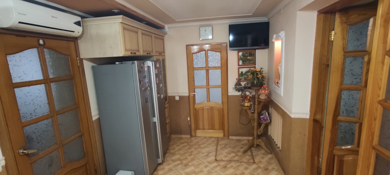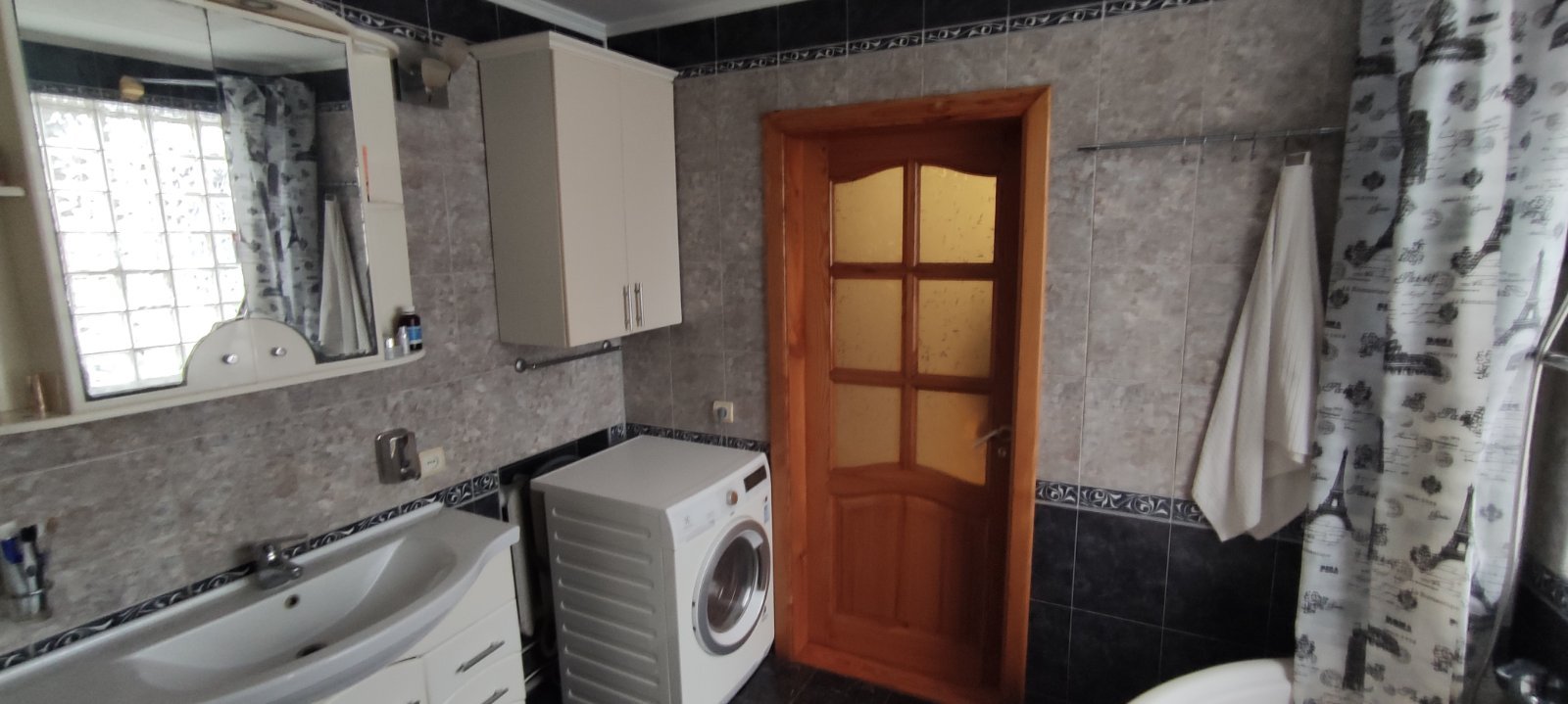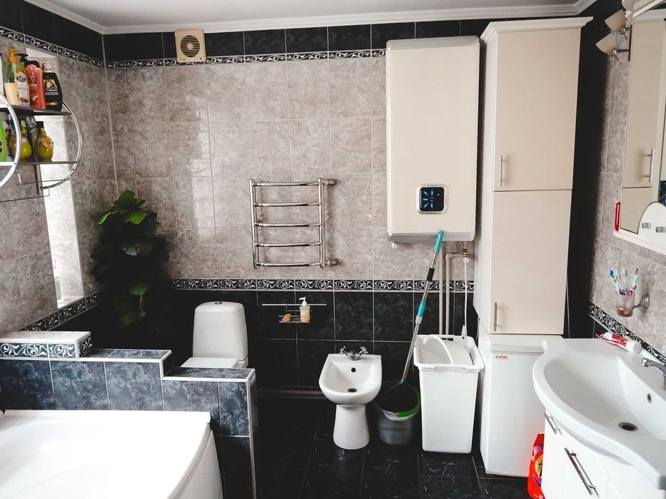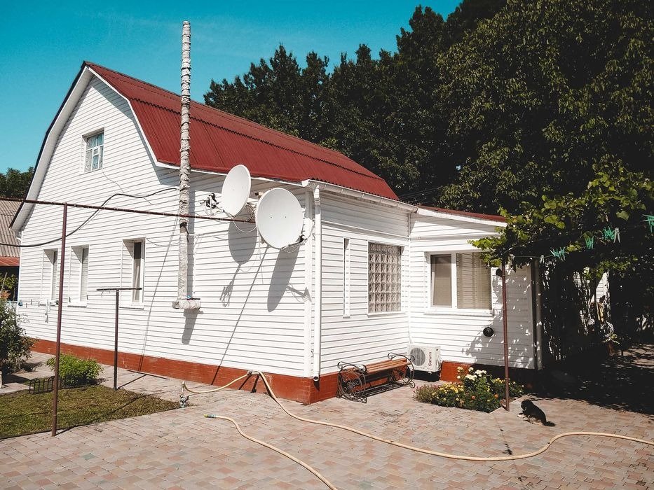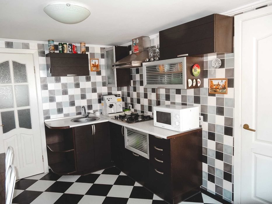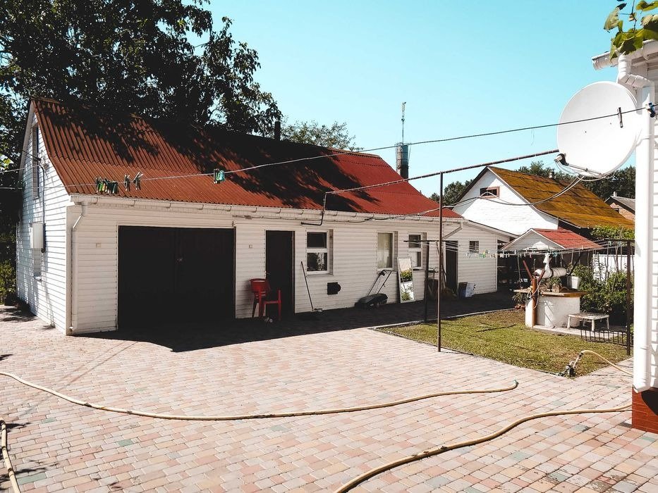 Березань - 2 вул. Космонавтів. Житловий будинок, рік забудови 1985. Площа забудови 123 кв. м. Складається із: веранди 8.5 кв. м., кухні 16.9 кв. м., ванної кімнати 8 кв. м., кімнати 17 кв. м., кімнати 9.8 кв. м., кімнати 13.1 кв. м., кімнати 21.5 кв. м. Будинок газифікований, 3-х фазне електропостачання, централізоване водопостачання + власна скважина + власна криниця. На території господарські будівлі, гараж, сарай, 2 погреба, велика альтанка, стаціонарний басейн, окреме житлове повністю укомплектоване приміщення що складається з кухні, ванної та житлової кімнати. З фасаду будинку знаходиться ліс. До автодороги Київ-Харків 200 метрів, до центру м. Березань близько 4 км. Поруч знаходиться дитячий садок та два магазини.