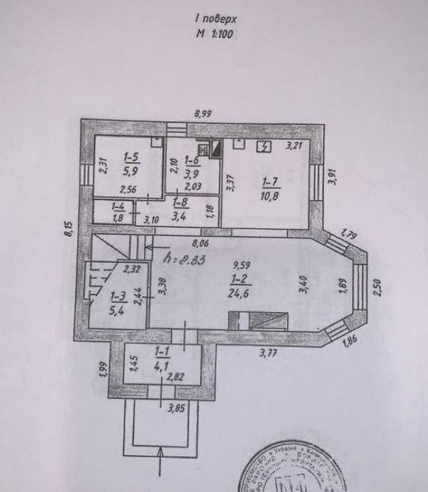 Перший поверх облаштований для відпочинку всієї родини: велика кухня, яка переходить у вітальню із каміном відкритого типу, велика ванна кімната, окремий туалет, закрита кладова кімната, котельня. Підлога першого поверху тепла (водяна), що дає тепло взимку і приємну прохолоду влітку.